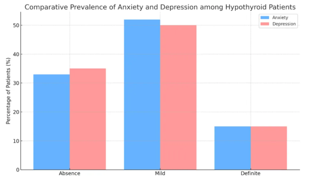 Numerous studies have reported elevated rates of anxiety and depression in patients with hypothyroidism, far exceeding those observed in the general population. Up to 40% of hypothyroid patients present with clinically significant depressive symptoms, and 30% report prominent anxiety manifestations [7-10]. This bidirectional association complicates diagnosis and management as psychiatric symptoms may obscure or mimic the classical features of hypothyroidism.