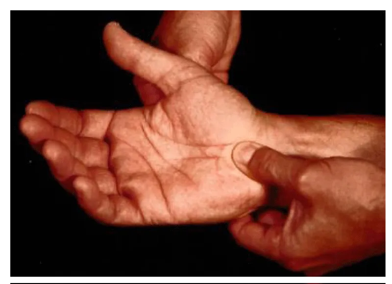 This also explains the mechanism of Phalen’s maneuver (90º of flexion) or reverse Phalen’s maneuver (90º of extension). In this position, the carpal tunnel pressure increases, if symptoms appear demonstrating median nerve pinched [1]. A similar test also is used to evaluate based on increasing pressure in carpal tunnel in neutral position (Durkan’s test) (Figure 3).